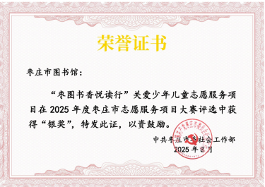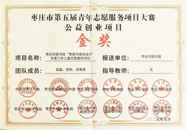 “枣图书香悦读行”项目获全市志愿服务项目大赛金、银奖