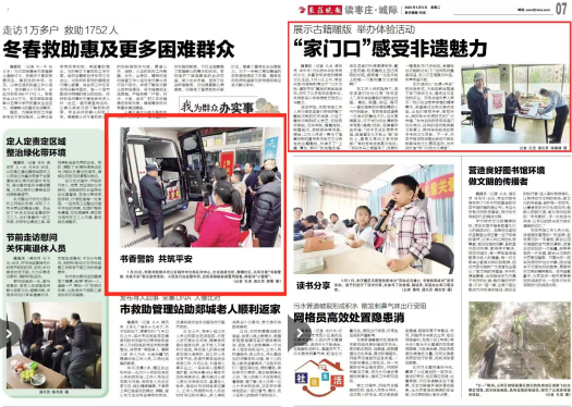 积极推动跨界合作,实现资源共享。与多所学校携手开展研学活动,并常态化组织“书香警韵”“爱心公益行”等特色志愿服务,拓展服务边界。着力推动服务下沉,“乡村阅读行:让书香浸润乡间”项目荣获山东省公共文化服务高质量发展典型案例。携手市慈善总会开展“流动书香行”活动、与孟庄镇政府合作开展灯谜活动,将图书、非遗体验与爱心服务一并送至基层学校、社区,切实让文化惠民政策落地生根。 打破资源壁垒,与辽宁、济南、泰安等省市级图书馆,以及市档案馆、市委党史研究院(市地方史志研究院)、市烈士陵园等单位携手合作,联合举办古籍文献展、家谱文化联展、红色文献展、“墨印初心·红色传承”、运河支队抗日事迹展等精彩活动,并积极探索“家谱+文旅”融合发展新模式,通过“馆馆合作”扩大了图书馆的社会美誉度和影响力。
