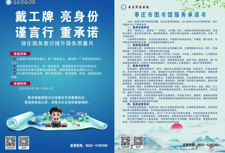 创新服务模式,推出“免押金办证服务”,同步启用积分管理系统,降低阅读门槛,以文化场景支撑社会信用体系建设,让公共文化服务更加普惠便捷。进一步强化服务意识,提升服务品质,精心策划并开展了“戴工牌、亮身份、谨言行、重承诺”服务质量提升月专项活动。通过“亮身份、树形象、优服务”举措,切实提升服务主动性,精细优化服务细节,让读者尽享更加便捷、贴心的阅读体验,助力图书馆整体服务质量迈向新高度。