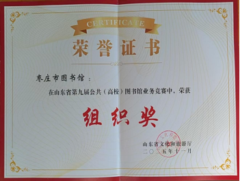 枣庄市图书馆坚持以品牌活动引领阅读风尚,全年举办线上线下阅读推广活动400余场,成功打造枣庄市“齐鲁文化情景阅读创意大赛”和“全市青少年成语经典故事会”两大赛事,吸引1300余人参赛,惠及群众4万余人,选送六组选手参加省赛,其中一等奖2组,二等奖1组,三等奖2组,我馆荣获省级“优秀组织单位”称号。